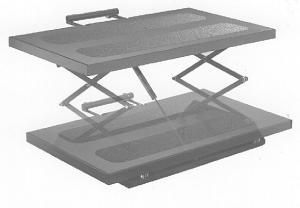 It consists of a 24 by 14-in. steel deck that raises and lowers on scissors legs with lift assist provided by a gas shock like those used on a hatchback car or van. The platform simply fits down in the floor of the trunk.