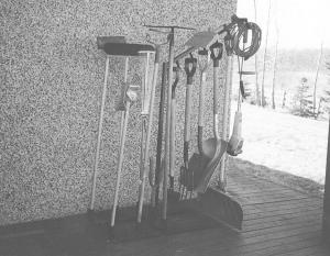 Six 4-in. long tube-type holders made of 1 1/2-in. sq. tubing are spaced equidistant on the base. Straight- handled tools - like brooms - can be inserted into the open tube holders.