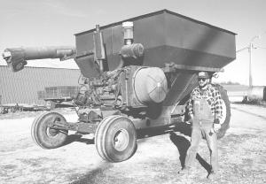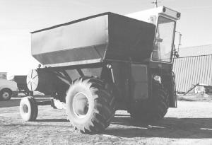 A grain box was fabricated out of 3/16-in. thick sheet steel and mounted to the right of the cab. It holds 400 to 450 bu.