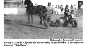 Says Belzer: "The Yamaha advertisement was completely misleading and false. A pony, and not a very large pony at that, could easily outpull the Tri-Moto."