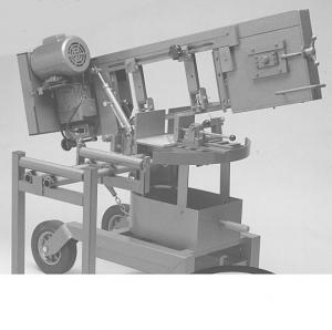 The two-wheeled Ellis 1600 is equipped with a 1-in. wide blade and is powered by a 1 hp, 110-volt electric motor. The turntable mounts on a half-moon casting. A built-in protractor allows for fast and accurate selection of angles, and a movable guide arm can be used to make the cut as accurate as possible.
