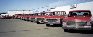 The parade entry consisted of three Supercabs, 6 identical 1/2-ton pickups, two Econoline vans, and one Ranchero.