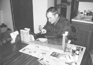 All parts of the vise that touch the gun are covered by strips of carpeting to avoid scratches.