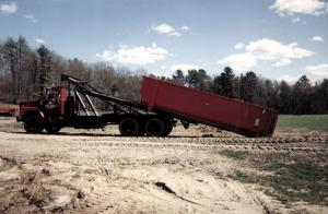 Roll-Off Garbage Containers Make Economical Forage Haulers HAY & FORAGE HARVESTING Forage Handling 24-3-2 When Russ Atherton and Tom Morrell went out shopping for a truck to haul haylage from distant fields back to the silos on their Lee, New Hampshire, dairy farm, they found it was going to cost them $35,000 to get what they wanted. And they felt they would need two trucks to keep up with the chopper.