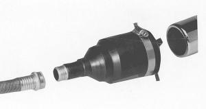 The "Underground Exterminator" consists of a 4 1/2-in. long, heat-resistant rubber sleeve with a male garden hose fitting molded into one end. The sleeve fits over exhaust pipes on trucks, cars, tractors, and even ATV's. It has a funnel-like design that narrows down in stages to accommodate different diameter exhaust pipes. A clamp is tightened to provide an air-tight seal.