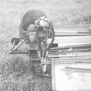 He mounted a small gearbox off an old combine at the back of a trailer that he made out of the running gear from a grain elevator. A hydraulic motor chain-drives the gearbox. Home built spools û made with 1-in.dia.pipe and concave disc blades û roll up wire.