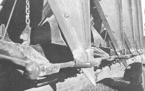 "It takes only about 10 minutes to set the header up for transport," says Boehm. "When I raised the dividers and placed the prop rods under them to hold them up, I used touch-up paint to mark the chain link that's used to hold each divider at the desired height during harvest. That way, when I arrive at the field I have no problem setting the right height for each row divider.