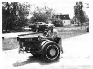 My two-wheeled car gets a lot of attention at fairs and parades. I built it using an old lawn mower and car parts. It travels on the two car wheels without tipping over. As FARM SHOW readers who read about the 2-wheel car several years ago know, the secret is that the two tires are underinflated. There are two small wheels inside each tire which actually support the car so it really rides on 4 wheels.