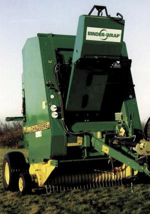 "Using the Binder Wrap system it takes only about 10 seconds to wrap a bale with two layers of plastic. It works better than using a tractor-mounted wrapping system because you don't have to spend a lot of time wrapping bales in a separate operation. I came up with the idea after I lost about $1,500 worth of round bales due to spoilage. I tried using a tractor-mounted system to wrap bales but it cost too much money and took too much time.
