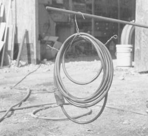 Handy Way To Hang Hoses, Electric Cords & Ropes FARM SHOP Handy Hints 26-2-38 Olaf Nieslony, Barrhead, Alberta: Here's a handy way to hang hoses, electric cords, and ropes. Just take an ordinary wire hanger. Flatten the wires together, leaving the hook in place. Twist the wires on either side and then bend each side into a "V". The coil of hose hangs over the the two "V"s and you use the hook to hang it up. What's nice about this simple idea is that it wraps around the hose on both sides, keeping it from unraveling.