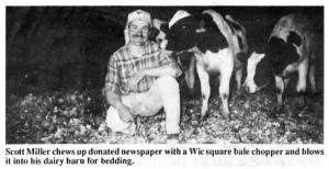 Wisconsin farmer Scott Miller, Beaver Dam, Wis., found a solution to the problem with a simple idea that provides him with a nearly unlimited supply of old newspaper. Miller simply parks an old combine bin at the end of his driveway and puts a sign on it: "Wanted - Old Newspapers" that can be seen by passersby moving in either direction on the highway that runs by his farm.