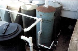 He was able to get the tanks for free, since they were pressure tanks that had developed small holes. Before using them, Foley patched the holes with metal epoxy and then mounted them on a concrete pad. He added a large plastic storage tank for a total capacity of 2,150 gal. All tanks are plumbed together by 1 1/4-in. PVC pipe.
