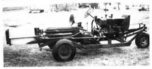 "I got the machine from my dad who had originally built it for use as a field sprayer," says Volk. "He used the frame and rear end off an old Mercury car and the 4-speed transmission out of a pickup. The splitter travels at speeds of 35 mph on the road so it doesn't take long to get around. I can also pull it behind my pickup. "The rear-mounted splitter is really convenient. I back my loaded trailer or pickup up to the splitter and roll the logs off onto the steel H beam that serves as the splitting table. When wood piles up I just drive the splitter ahead and start splitting wood again. I plan to add a boom that will let me lift heavy chunks onto the splitter table. I also plan to mount a belt-driven buzz saw."