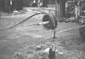 "Then all you do is position the rim over the well shaft, and as you pull the water pipe out of the well, you lay it over the rim," he explains. "The rim is big enough that it won't kink your pipe when you pull it over the top. I hook the end of the pipe to the four-wheeler and drive off until the pump is out. This way, one person can do a job that would otherwise take two."