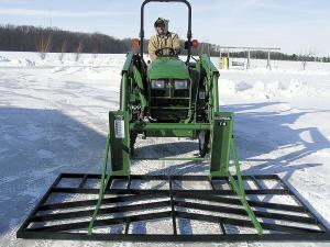 It's made from steel tubing welded into a rectangular shape. It comes in sizes ranging from 38 by 48 to 54 by 120 in. and weighs up to 650 lbs. It fits compact tractors, skid steers, lawn and garden tractors, ATV's, large backhoes and farm size tractors. Wentling says the company will soon offer accessories for the MuSHGAL including a squeegy bar to clean slush and snow off asphalt and concrete without scratching it, a double sided removable cutting edge, a spike tooth that can cut into the ground, and a quick slip on hitch for moving wagons, campers and trailers.