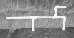 To make it, you need two elbow pieces, two tee's and two end caps. You also need one 9-in. piece, one 7-in., two 4-in., one 3- in. and two 2-idn. lengths of 1/2 in. dia. pvc.