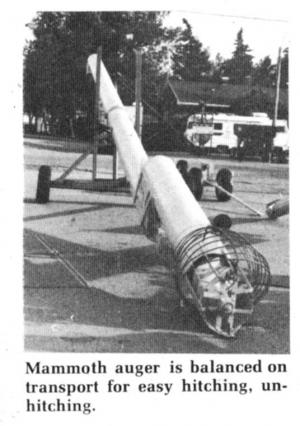 First on the market with a 16 in. dia. grain auger is Bergen Mfg., Drake, Sask. Capacity of the monster grain mover is 400 bu. per minute. It's available in 60 and 70 ft. models. Suggested retail (in Canadian dollars) is right at $12,000 for the 60 ft. model.