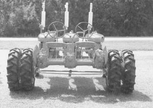 "It was a lot of fun to build and always draws a lot of attention wherever it goes. My son Casey helped me build it," says Stewart. "It makes a great parade tractor, and we really enjoy taking it to tractor shows and listening to people try to figure it out. It's surprising how many people ask me what year Farmall made this type of tractor. At shows I often crank one engine up, then put the other two engines in gear and let off on the clutch and drive forward to start the other two engines up.