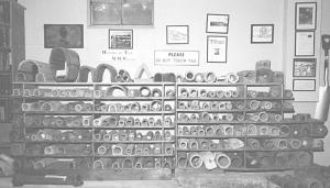 There are over 350 different types of tile in his collection, including a number of other tiles dug up from Johnston's farmland. Most early tiles were round or horseshoe-shaped, and about 15 in. long. They were buried 2 or 3 ft. deep lying end to end in a trench. Water entered the tile lines through the spaces between the sections.