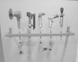 Inventor Jerry Walstad says, "It works great for storing air ratchets, grinders, hammers, saws and so on. There's no need to go through toolbox drawers looking for the tool you need. You can roll the stand right up to where you're working. An optional heavy duty shelf snaps onto the base of the unit for storing small items."