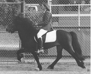 The best Icelandics have five gaits. While the pace is impressive, it is the fourth gait called the t÷lt that has made the Icelandic horse famous. This pace which varies from gentle and regal to equal in speed to a full gallop is know for its smoothness. In fact, demonstrations of the t÷lt are often done with the rider holding a full glass of beer in one hand, the reins in the other and riding without spilling a drop.