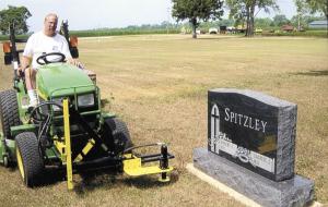 Larry Spitzley's home-built weed whacker on front of his riding mower moves four directions independently. That makes it perfect for working in the 12-acre cemetery near Mulliken, Mich., that he maintains. Before building it, he used a hand-held string trimmer around the several hundred headstones.