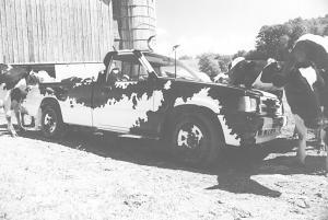 "Everyplace I go people stop to look. Some even take photos of it with their family," says Bruce Sykes of Brookville, Penn., who decorated his white 1989 Mazda longbed pickup to look like a Holstein cow.