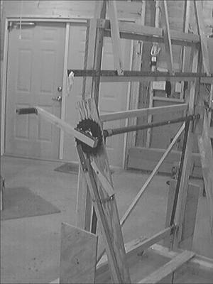 Drywall Lift Has Saw Blade Ratchet FARM SHOP Miscellaneous 30-2-40 Putting up drywall on a wall or ceiling can be quite a job, especially if you have to work by yourself. Tom Reitsma, Staffordville, Ct., solved the problem by building his own drywall lift.