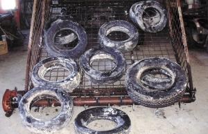 "Once you get 10 to 15 tires in the bucket, you tip the bucket back so they fall to the back. Then you can load another 10 to 15 tires," says Vander Heide.