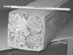 Another machine picks up the four cables, cuts them into 8-ft. lengths, and weaves them into a mat, similar to a giant bamboo window blind. The machine then rolls the mats into 5-ft. dia. rolls.
