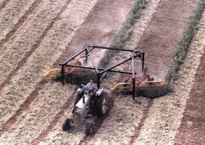 "In a conventional raking system if you start raking when the hay is too wet, you finish with the hay too dry. With my hitch by the time I reach the center of the field and start going back I'm throwing dry hay onto wet hay."