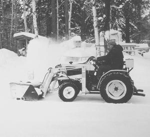 With the blower sitting in the bucket, Lundgren can control the working depth, making it possible to lift the blower high enough to remove a bank of snow.