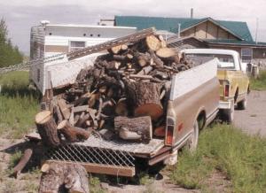 He bolted a pair of 2 by 4's to each end of a 22-ft. long, 4-ft. wide section of fence. His homemade trailer, built from an old pickup bed, is 8 ft. long. Before loading firewood into the trailer, he pulls one end of the fence forward onto the trailer floor until the back end hangs over the trailer's tailgate, then lays the front over the front end of the trailer.