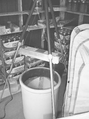 "I finally got the bright idea of shining an ultraviolet sterilizer onto the 20-gallon crock I was using. I was amazed how quickly the surface of the brine cleared up. The musty smell due to the yeast disappeared, and the delicious odor of the dill and garlic brine now fills the basement," he happily reports.