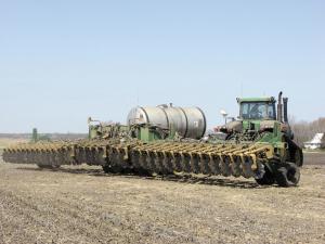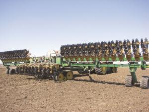 Using RTK guidance, Hermanson's cousin Nick did spring tillage on about 3,500 acres of corn and soybean stubble in 2007, applying 70 units of 32 percent N in front of the wavy coulter. "The RTK let us till and fertilize the same zones that we placed in the fall of 2006 with the Soil Warrior," said Hermanson. That machine, however, was only a third the sizeà..12 row units on a 20-ft. bar.