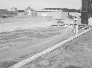 Reuseable Film Seals Silage Pits SILOS Silos 31-5-29 "Impermeable" clear plastic film promises to reduce spoilage in bunker silos. Silostop" film is only 45 microns thick, but creates an effective barrier to oxygen, reducing losses of silage to less than 5 percent and virtually eliminating surface mold, says Bruno Rimini Ltd., London, England. Tests show ordinary plastic film is 40 times more permeable to oxygen than Silostop. Protective tarpaulins can be used to protect the film from damage from birds and rodents, and also from ultraviolet radiation damage by sunlight. No weight is needed on the surface, except for sealing the edges. The company offers sandbags to do the job. Contact: FARM SHOW Followup, Bruno Rimini Ltd., 305 Ballards Lane, London, England N12 8NP United Kingdom (ph 011 44 20 8446 3646; simon@silostop.com; www.silostop.com).
