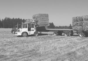 He converted an old garbage truck into the "reversed", heavy duty forklift tractor. They use the rig in their baling and hay hauling business which serves the export market.