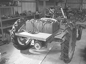 At 100 amps, the electric motor he installed produces between 5 and 10 hp versus the G's original 7.2 hp. While the batteries wouldn't hold up long doing heavy tillage, the electric tractor is ideal for seeding and light cultivation. Ruggieri hopes to rig up a boom sprayer and eventually a lime spreader for it.