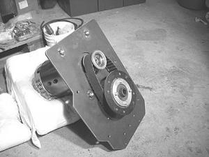 Using Niekamp ready-made parts, installation consisted of attaching the motor and sprocket assembly to the clutch plate and finally to the clutch housing/transmission. The Niekamp package even includes a frame for battery storage. All that's needed is plywood for the base.