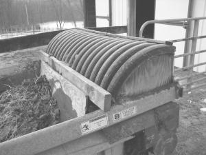 A furring strip attached to the upper (rear) edge of the deflector helps stabilize it. "When the manure is wet, it will stick to the inside of the deflector and the furring strip keeps it from sagging," says Barley. "I mounted pieces of plywood between the spreader sides and the curve of the deflector on one spreader, but left the spaces open on the other two with no impact on the spread pattern."