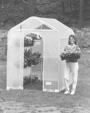 The 8-ft. Germinator holds 24 flats of plants. With an optional ready-to-fit shelf system you can double the capacity. The unit comes with six, 15-in. earth anchors. The Germinator has been tested in high winds and hail.