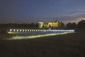 Spray Boom Fitted With LED Lights MISCELLANEOUS EQUIPMENT Miscellaneous 34-1-43 Two manufacturers at Agritechnica showed spray booms fitted with LED lights - Amazone and Dammann (pictured). Makes the spray easily visible during evening and night time hours. Plugged-up nozzles become easily visible and you can quickly check the spray pattern.