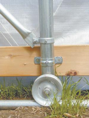 "Units can also be mounted on permanent tracks with fixed steel rollers so that one or two people can easily move a 16x24-ft. or 30x48-ft. tunnel," he says. "Once you know what you are doing with skids or wheels, you can move a 30 by 48-ft. high tunnel and secure it in place in less than 2 hrs."