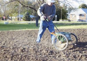 "I made the planter to make planting go as fast as I could, and it saved quite a bit of time. The holes are all even and the same depth," Sterling says. "Where the soil was hard I just stepped on the planter."