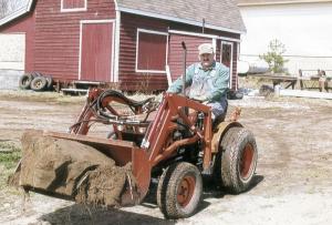 "This tractor has more than 1,000 hrs. on it and has performed flawlessly over the years. I use it for general yard work and for handling logs at my sawmill. I can fit the bucket with forks for handling logs, and also a snowblade for moving snow. The bucket is 42 in. wide and can be raised up to 6 ft. high. It'll lift 500 to 600 lbs. To compensate for that weight I mounted a 400-lb. weight box on back of the tractor.