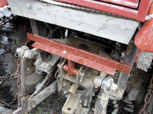 When Ralph Thibault is working on steep sidehills, he doesn't worry about rolling his tractor. He has an outrigger he can slip into place, as needed, on either side of his tractor. He also has an anti-lift bar that keeps his 3-pt. hitch drawbar from accidentally lifting when towing a cart.
