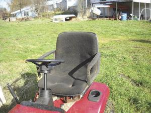 Riding Mower Fitted With Office Chair FARM HOME Lawn Mowers 31h 38 I m not the type to leave anything alone if I think I can make it work better says Wess Cornelius The Winlock Wash man recently sent photos of his 2007 Sears riding mower He replaced the original seat with an ordinary office chair in order to make the ride more comfortable And he raised the steering column 9 in I m 6 ft 3 in and got tired of always having to hunch over while wrestling with the mower s steering wheel which was positioned too low for me says Cornelius The seat sat too low also and didn t have much ęcushion to it The seat back wasn t high enough to provide good back support and there was no suspension The office chair has a plush bottom covered by heavy nylon fabric and a high back support It s much more comfortable than the original seat and the extended steering wheel really helps It s so easy to steer now that I can hold the wheel with one hand while holding a coffee cup with my other I can mow all day long in comfort To solve the steering wheel problem he removed a bolt that held the steering wheel to the steering column then slid a length of pipe over the column and rebolted the steering wheel to it He made some brackets and then mounted 4 springs under the seat The 2 front springs are from the seat off an older riding mower and the back springs are coil springs that he bought new at a hardware store Office chairs can be bought cheap at any second hand store notes Cornelius Contact: FARM SHOW Followup Wess Cornelius 1312 Ferrier Rd Winlock Wash 98596 ph 360 785-4178