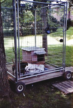 Whenever he wants Mike Elder, White Plains, Md., can move his small “wiener” dog around in his back yard, while keeping it safe from predators at the same time. That’s because he installed a wooden floor in his dog kennel and mounted it on wheels. A small homemade doghouse with a flat tin roof gives the dog a dry place to sleep.