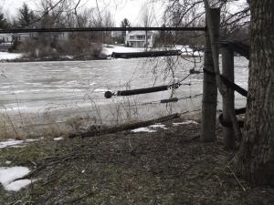 While nothing stops the trees, if the wire can give enough, it holds the ice until the river starts to go down, pulling the ice with it. With luck, Ward figures most years the fence will still be there.