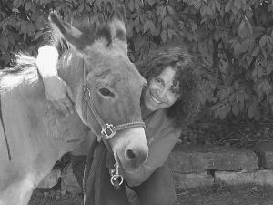 She has an indoor arena and works with children and adults with special needs. As an example of donkeys’ intelligence she tells the story of work done by a woman in England, where donkeys are taken to children’s homes for therapy. One task is to pick up an envelope, ride the donkey to the mailbox and mail the letter. One young boy’s disabilities prevented him from picking up the envelope – so the donkey did the whole task for him, on his own initiative.